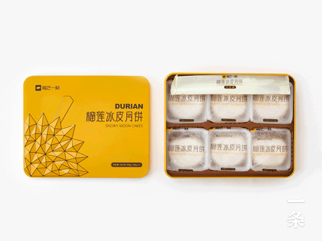 一条生活馆就找来了专做榴莲美味的品牌“榴芒一刻”,他们家的招牌就是榴莲冰皮月饼!