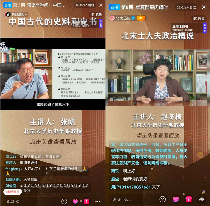 如今,北大在短视频和直播平台上找到了“平民夜校”的新延伸,以公开课直播的形式,让人们可以无门槛地选修北大课程并交流互动,将知识输送到了更远更需要的地方,实现知识普惠。