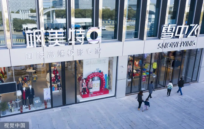 2021年1月17日,江苏省常熟市波司登国际控股有限公司旗下的波司登、飒美特、雪中飞、冰洁等多个品牌羽绒服吸引了不少顾客前往购买/图源:视觉中国
