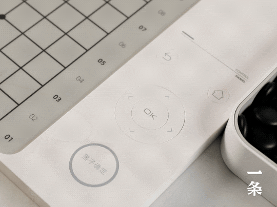菜单的操作按钮在棋盘上,上下左右选择、确认、返回、回到主页、落子确定,这几个键,可以操作机器所有的功能。