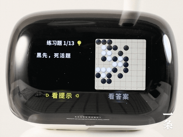 屏幕上不仅能看见棋局,还能选择看提示和看答案,在不会下的时候可以看着提示来落子。