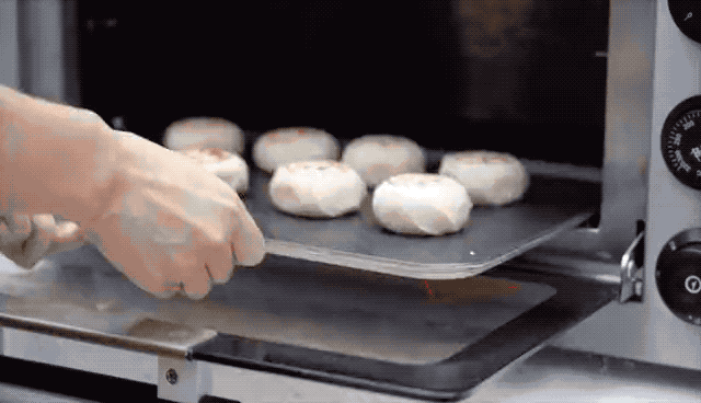 解冻后,把有字的那一面朝上,放入烤箱,温度设置为220℃,烘烤约10分钟。