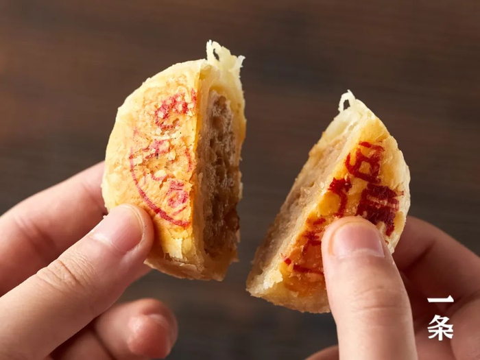 对半切开,酥皮层层叠叠,细腻又不失紧实,香酥无比。