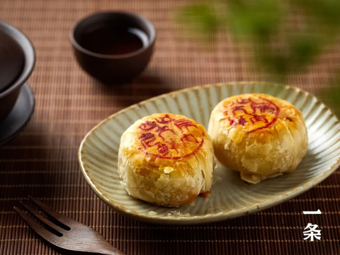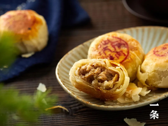 饼皮选用优质小麦面粉、新鲜熬制的猪油为原料,经传统开酥工艺制成。