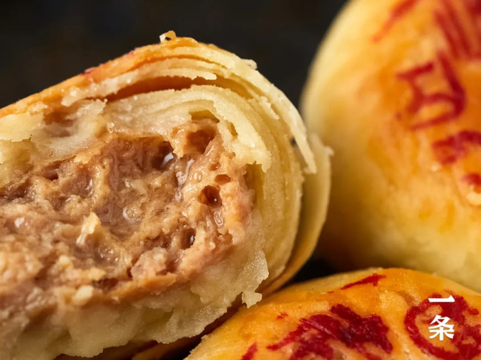 松脆的饼皮,包裹着丰腴带汁的肉馅,金黄油亮,忍不住赶紧咬上一口。