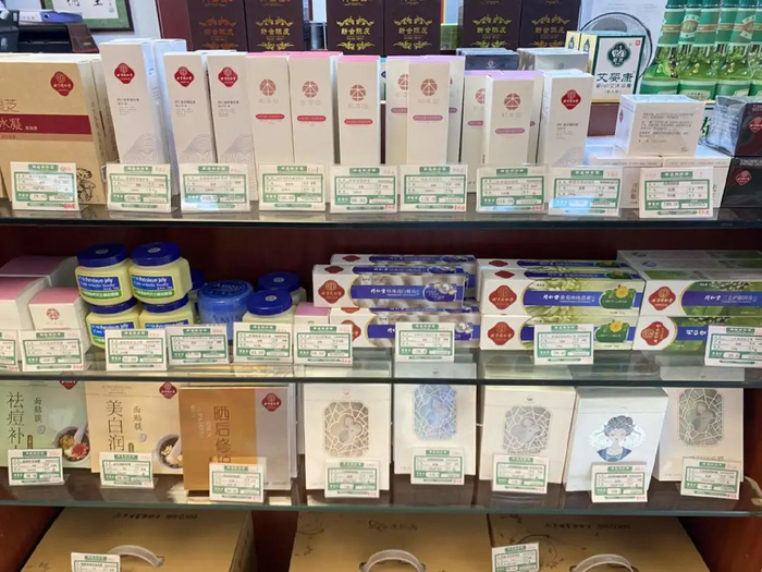 面膜、洗发水、护肤品呵护你的全身,卫生纸、卫生巾,还有洗脸巾保证你的干净。药店骨子里的安心还带火了一批械字号(医疗器械备案字号、有临床功效)和药店自有护肤品牌。这几年大火的敏感肌专用薇诺娜和可复美都是从药店“走出来”的品牌。