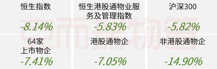 本月物业股普遍下跌,恒生港股通物业服务及管理指数、64家上市物企、港股通物企、 非港股通物企分别下跌5.83%、7.41%、7.05%、14.90%,同期恒生指数和沪深300分别下跌8.14%和5.82%。