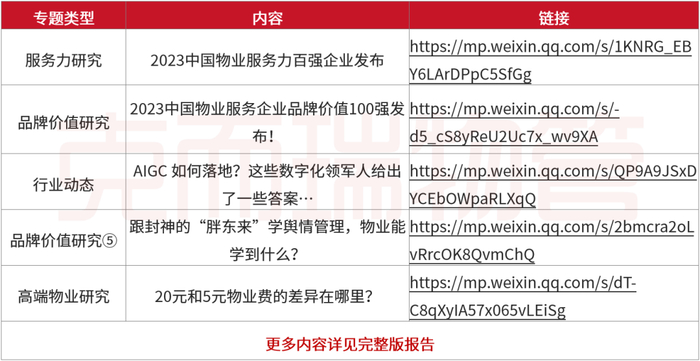 2023年,物业人士必备的案头资料——《全国物业管理行业月度报告》改版升级!更强大的研究力、更广角的监测、更详实的数据、更全面的分析、更多元的领域,并可根据企业需求定制报告,欢迎联系各区域负责人咨询详情。