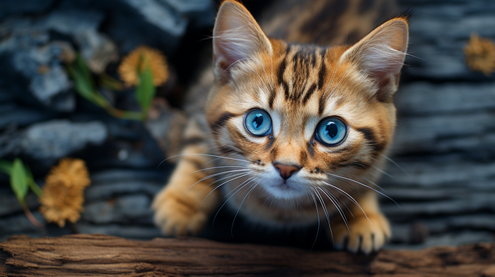 Prompt:top down aerial shot, beautiful national geographic photography, a cute baby cat looking up, vibrant film stock, high definition --ar 16:9 --s 300--v 5.2