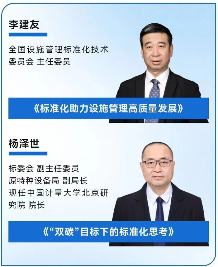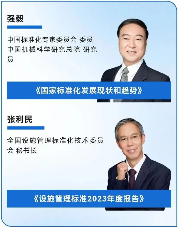 本次峰会演讲嘉宾分别来自国际标准化组织ISO/TC 267、全国设施管理标准化技术委员会、全国智能建筑及居住区数字化标准化技术委员会、中国标准化专家委员会、IFM上海分会、中兴通讯、SGS、索尼中国、丹佛斯中国、爱玛客中国、复星医疗集团、威思客集团、广州龙沙生物、博绿信远、克而瑞、设施之家、上海费哲、宜格集团、广州保利商业物业等机构或公司的设施管理专家及行政领导。