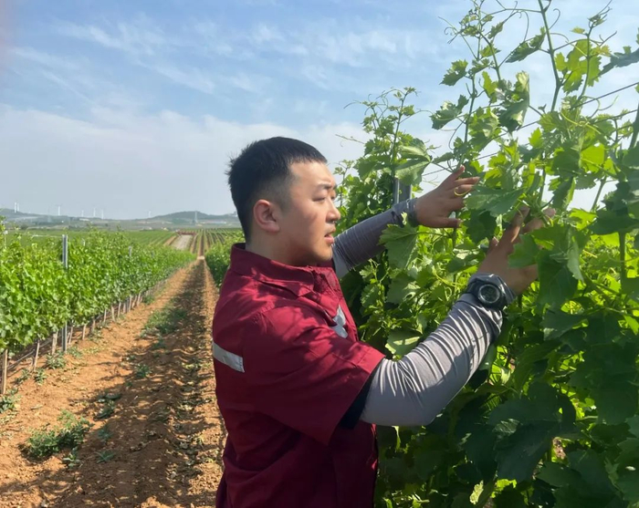 |在葡萄成长阶段,李进会经常来到葡萄园,观察葡萄长势。