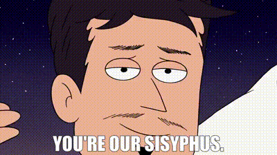换句话说,你认为停下来是可耻的。生而为人,你必须要「做出贡献」「持续进步」,不然人生就是虚无的,存在就是没必要的。