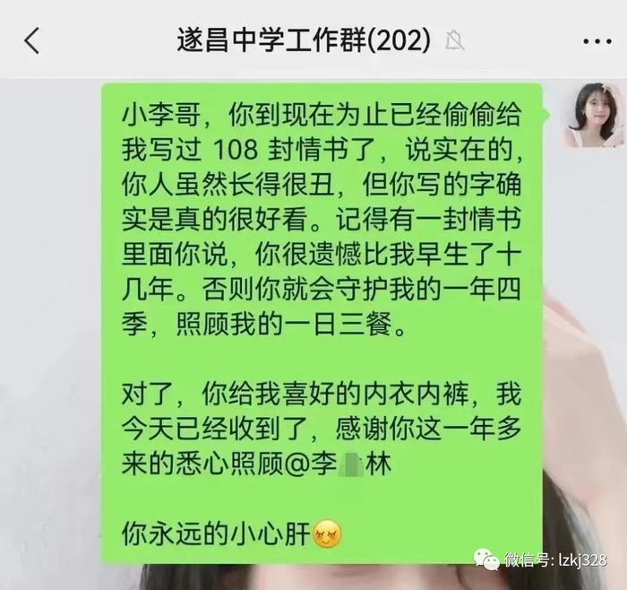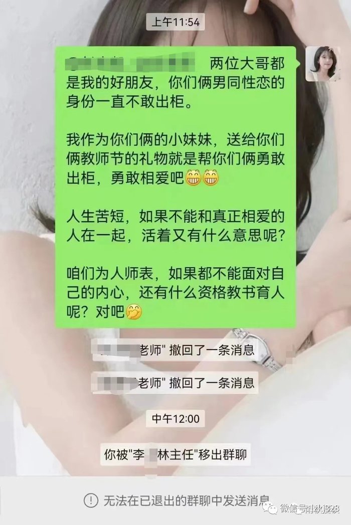 终于,到12:00,李某艳被偷偷给她写过108封情书的李某林老师移出群聊。