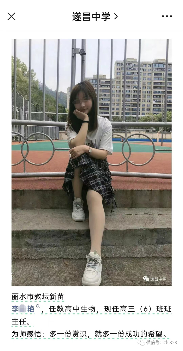 事情发生后,有人怀疑李某艳老师脑子出了问题。但检索发现,李老师不但是高三班的班主任,还是学校的名师,2021年3月,遂昌县第十三届教坛新秀评选结果出炉,遂昌中学李某艳等16人被确定为教坛新秀。李老师的为师感悟是:多一份赏识,就多一份成功的希望。