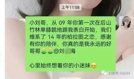 第二位艾特的是刘某海,两个人维系了14年的柏拉图之恋。