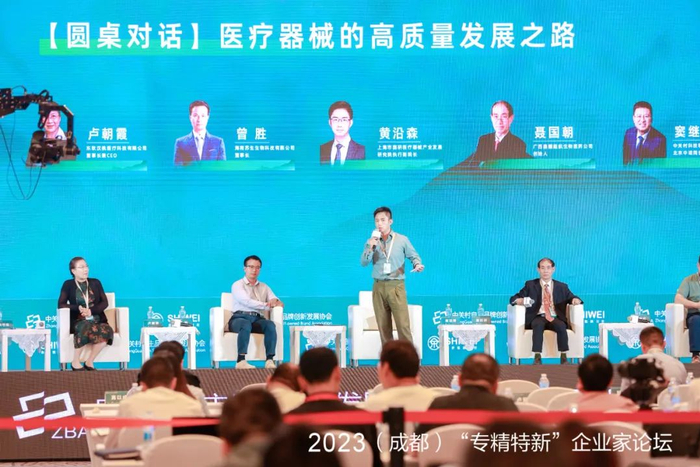 9月15日,由中关村自主品牌创新发展协会和上海伍仟卷实业发展集团公司联合主办的2023(成都)“专精特新”企业家论坛在成都举行。围绕“医疗器械的高质量发展之路”这一主题,东软汉枫医疗科技有限公司董事长兼CEO卢朝霞、海南苏生生物科技有限公司董事长曾胜、上海市国研医疗器械产业发展研究院执行副院长黄沿森、广西鼎耀超航生物医药公司创始人聂国朝、中关村科技租赁股份有限公司副总经理窦继岩展开了一场对话。余世维研习社社长、上海伍仟卷实业发展集团公司董事长余世维担任本场对话主理人。