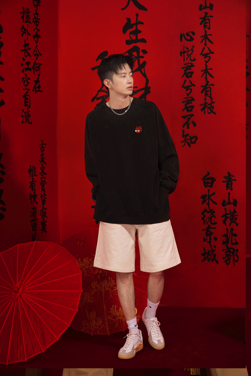 整件卫衣兼具柔韧质感的同时,更富有趣味性,国风韵味十足。