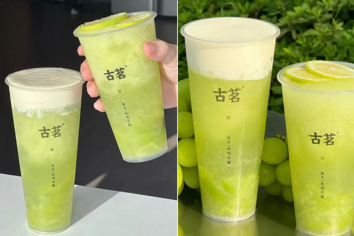古茗的芝士青提,底部大颗的阳光玫瑰青提果肉,配以顶部咸香芝士奶盖,奶香果香茶香,三种风味交织,层次丰富。