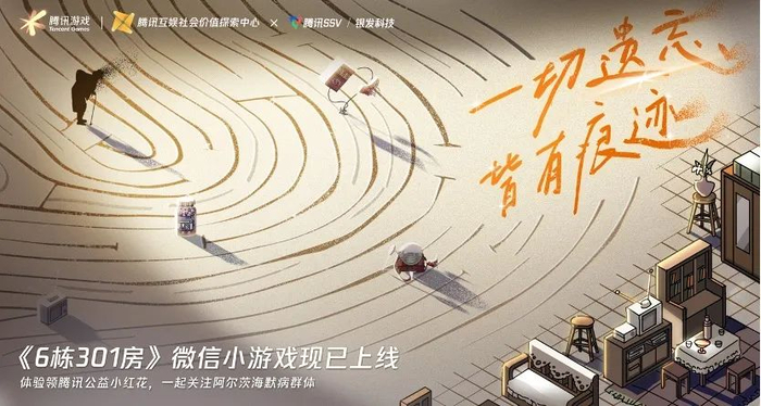 在第30个“世界阿尔茨海默病日”当天, 围绕着“早发现、早干预”这一目标,腾讯SSV银发科技实验室捐赠近500万元,与北京大学第六医院和上海交通大学合作,用游戏和数字化的方式探索,涵盖科普宣教、筛查、确诊和早期干预4个阶段的防治闭环模式。当天,科普宣教小游戏《6栋301房》、筛查小程序《银发脑动力》正式上线。
