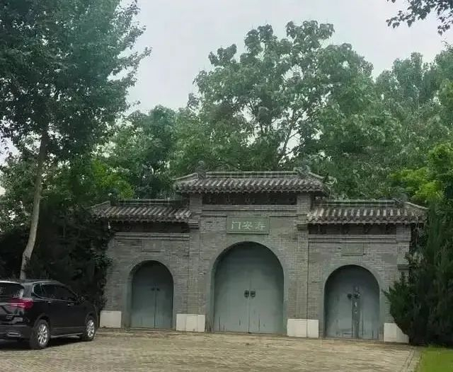高墙青瓦,占地12亩(一说是15亩),也就是8000平米,如果把陵前路算进去,大概9154平方米。单是围墙就高达3米。黑色的大门紧闭,门前有门牌,彰显了它的与众不同。