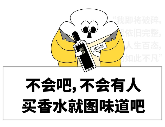 但不靠文案也不行,这是香水先天不足的无奈,毕竟气味这东西看不见听不见,抓不住摸不着,想卖香水只能攻心。要不然,怎么现在挑香水最常用的问题是:“有没有这种感觉的?”