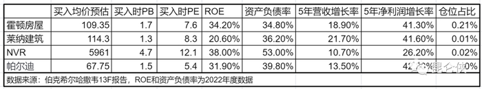 通过查阅和统计伯克希尔买入这三家房地产的价格,我发现其中除了NVR的估值较高外,企业两家的PB和PE都较低。