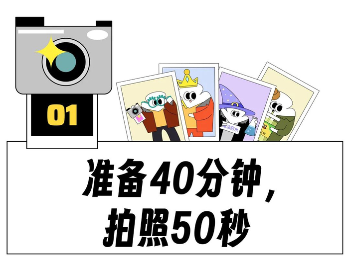 因为不同于20年前的大头贴可以自己控制快门,每张照片只给了我们50秒的拍摄时间,一旦按下拍照就得接受50秒的无限循环。