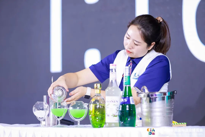活动现场,参赛选手们有以牛栏山为主题的“牛气冲天”、“栏山太牛”,有以京味儿文化为代表的“花香满京城”、“京韵一号”、“京味印象”,有以“兰亭序”、“钗头凤”、“只此青绿”、“遇见梵高”等诗画为题材,有以“秋日恋歌”、“夏目的轻语”等节气为灵感,有“蓝色梦想”、“白日梦想家”等讲述奋斗的故事,也有“飞天逐梦”、“盛世如愿”等家国题材的创意作品,选手们充分利用桂花、茉莉花、普洱茶、乌龙茶、青花椒、朝天椒、天然风味水果等元素进行搭配,通过丰富多样的创意故事,精致的摆盘装饰,不断创新着中国白酒鸡尾酒的多样化表达。