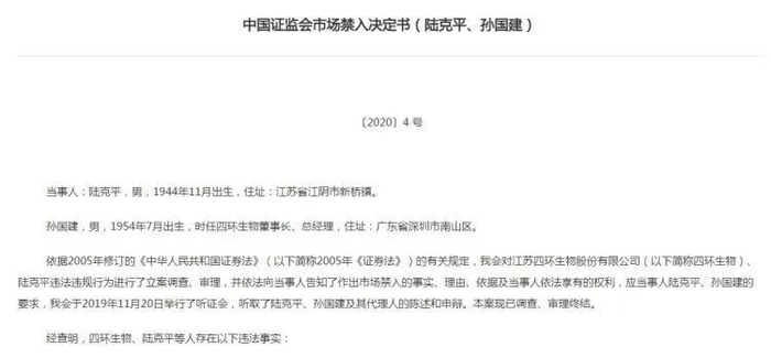 期间,陆克平借助四环生物平台暗地“坐庄”,不断违法操弄股票、违法披露公司信息,在限制交易期限内买卖“四环生物”股票获利。