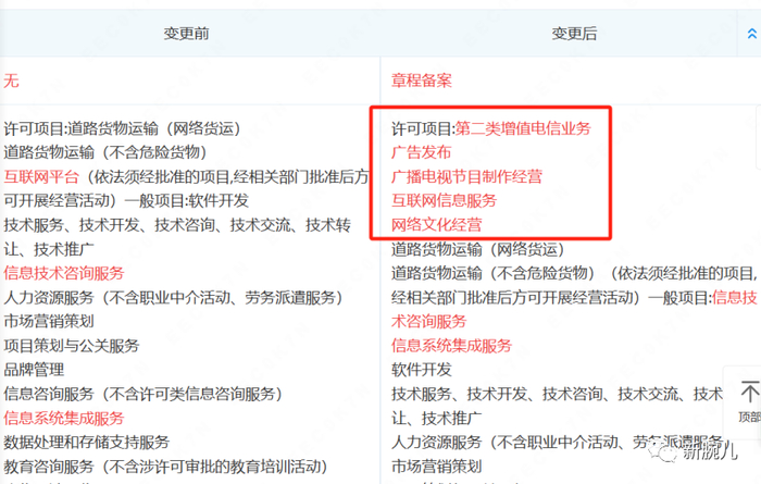 相对于之前的业务范畴,海南鸿跃新增加了电信业务、广告发布、广播电视节目制作经营、互联网信息和网络文化管理。