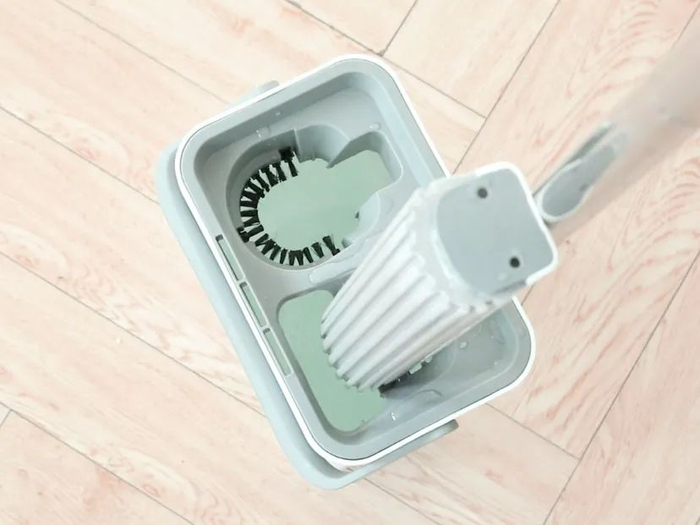 拖完地的脏拖把,直接塞进桶里来回涮几下就干净了。