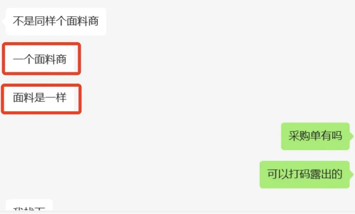 直接回复我们那是一个面料商、同样的面料。