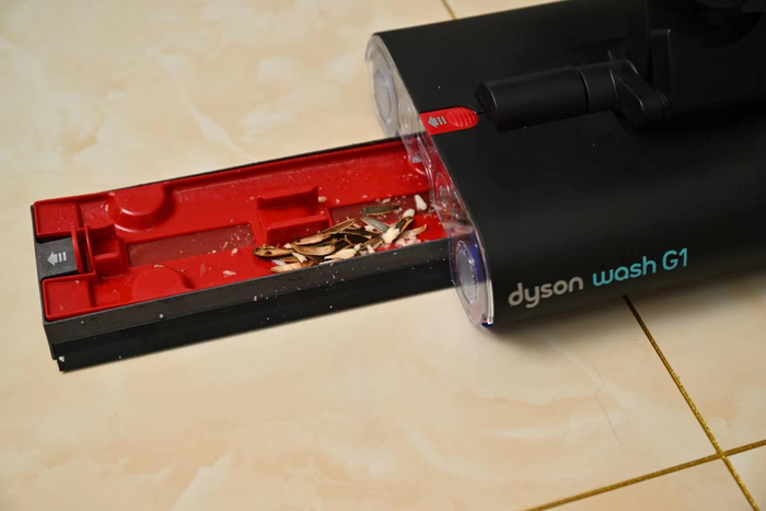 在一些细节设计上,也能看到戴森工程师的巧思。比如,在水箱、碎屑盒以及整机拆装的过程中,随处可见“一键快拆”功能,使机器使用更为方便快捷。