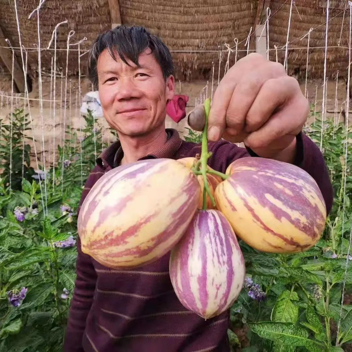 和印象中的人参果完全不同,它们个个外皮泛黄,紫色的花纹点缀其中,拿在手里很是可爱。