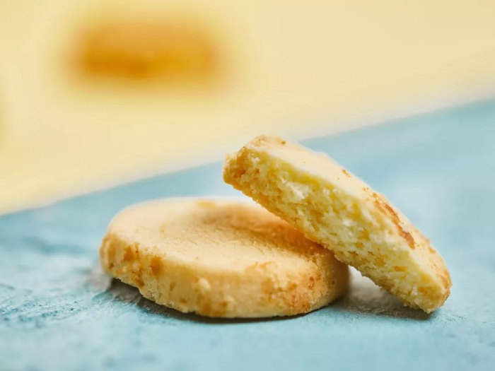 一口咬下去,酥得掉渣,沙酥的曲奇颗粒,在口里慢慢融化。吃完后,舌头上还残留着喷香的奶味。