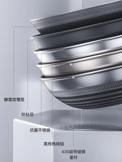 锅体用料也非常扎实,由内到外足足有5层: