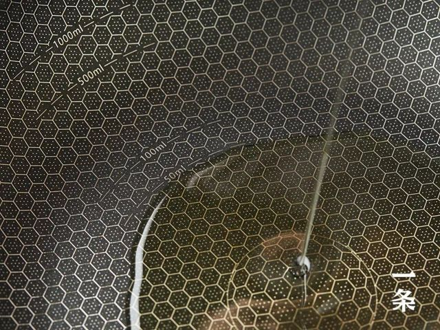 这口锅的锅内壁,在不粘层的基础上,刻上了精密的凹凸纹理,构成了一张蜂窝网状结构。