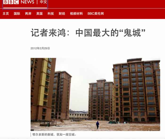 这一误解来源之一是 BBC 在2012年4月刊发的一篇报道,“站在鄂尔多斯康巴什的街头,15分钟看不见一个行人和一辆车”。