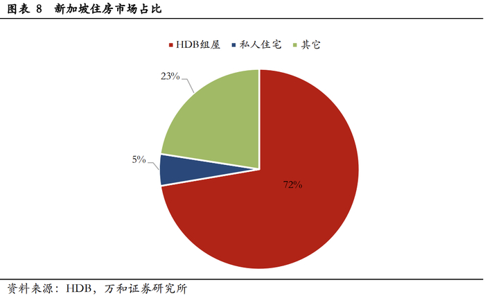 新加坡房屋结构是,72%为组屋,只有5%为私人住宅,23%为有地住宅。