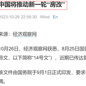 经济观察网给出的新闻标题是:中国将推动新一轮“房改”。