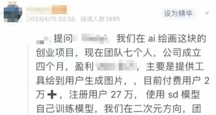比如国内有个7人小团队,靠AI绘画吸引了2W+付费用户,只花了四个月,就跑出成熟的商业模式.....