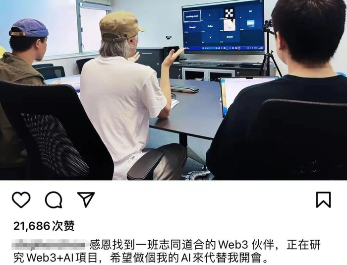 连资深演员也发帖说,“在研究Web3+AI项目,希望做个AI替代自己”,可能用不了多久,大家在荧幕上看到的都是AI演员了......