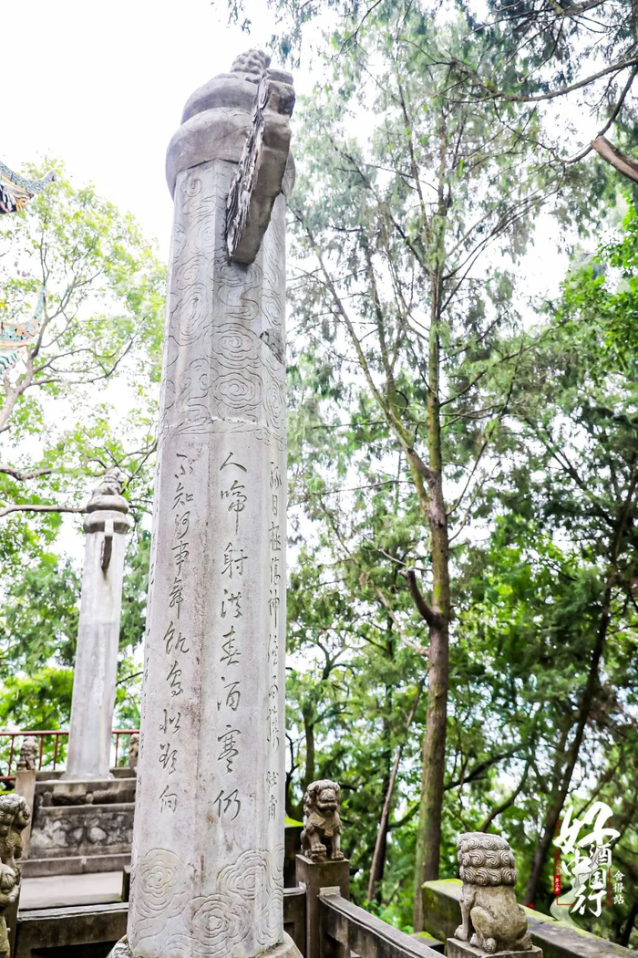 |金华山道观入口两旁立了两根华表,刻有杜甫两首诗文,分别为《野望》和《冬到金华山观,因得故拾遗陈公学堂遗迹》。摄影/好酒地理局视频中心