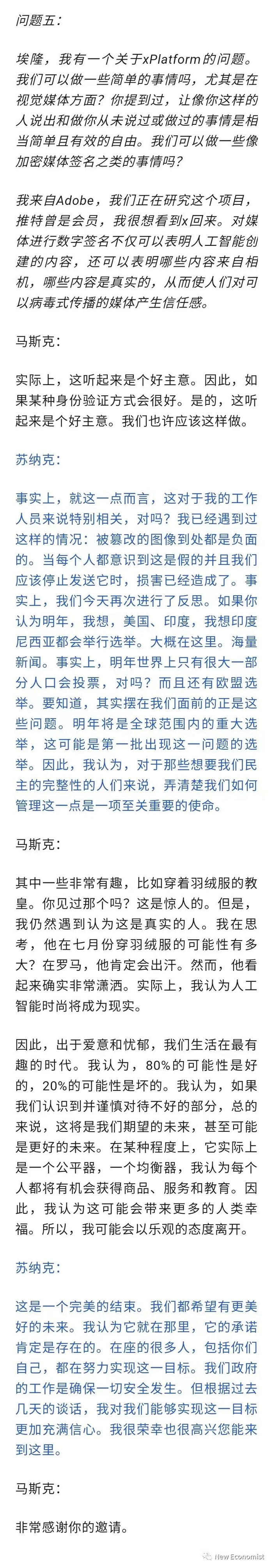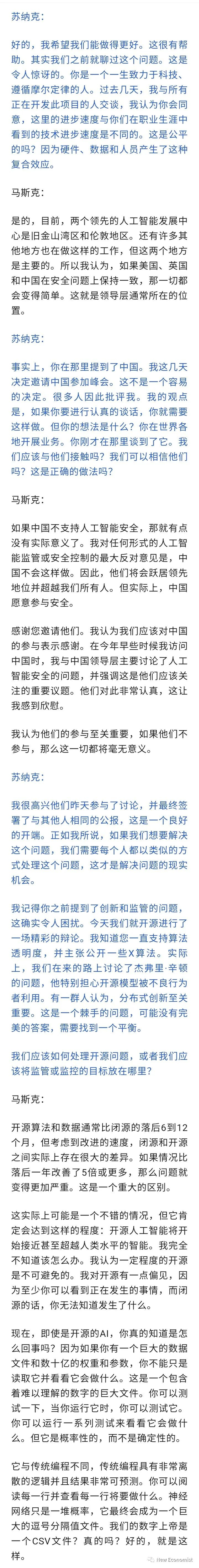 这个最新的马斯克访谈里一些短视频已经刷屏,最有意思的是访谈由英国首相苏纳克作为嘉宾主持。客观的说,两位的表现都很可圈可点。
