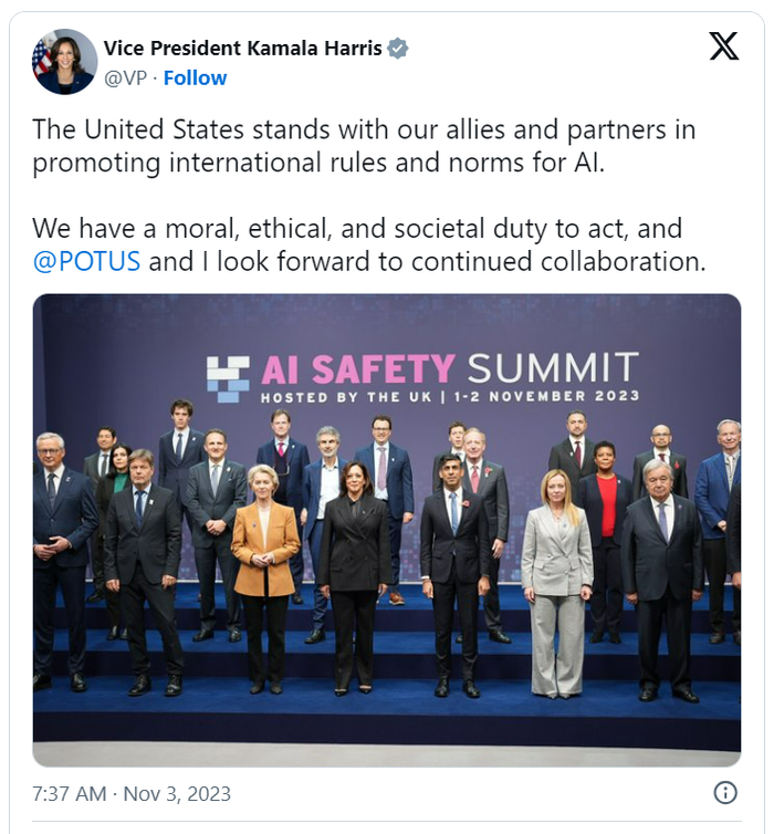 The U.S. vice president’s participation in the summit came only a day after U.S. President Joe Biden released an executive order regarding AI safety. Biden termed it as the “most significant action ever taken by any government to advance the field of AI safety”.