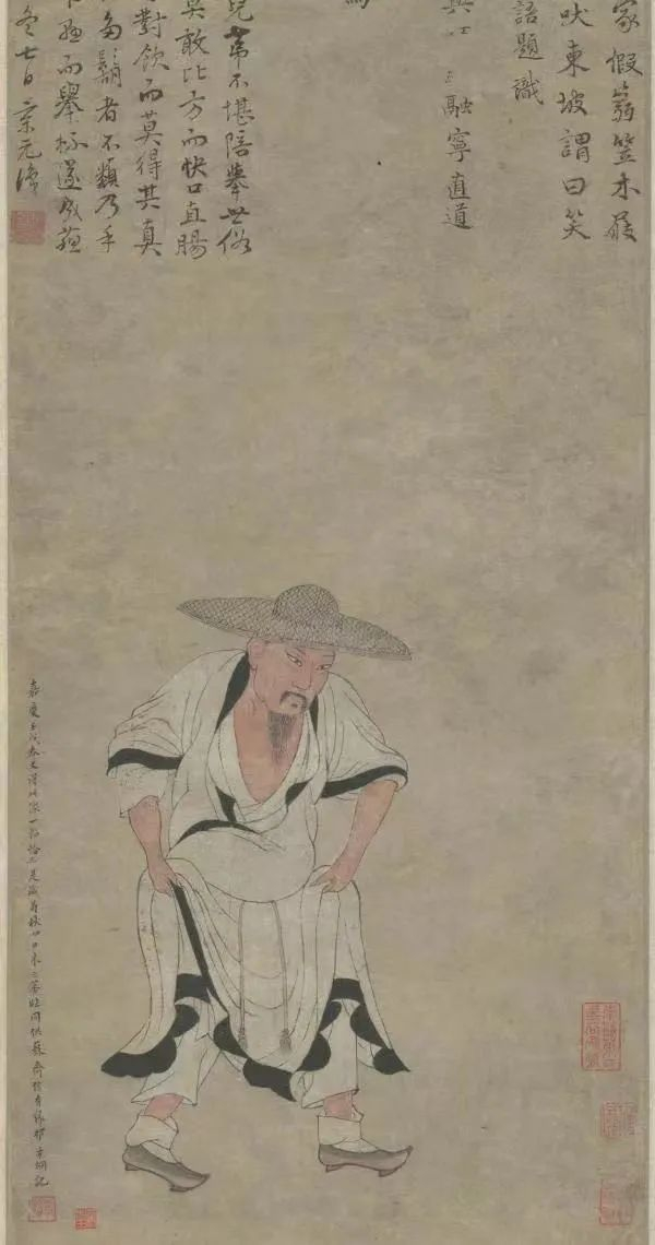 |明 朱之蕃《临李公麟画苏轼像轴》描绘苏东坡被贬海南时的经历