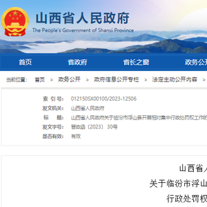 一、同意在临汾市浮山县开展相对集中行政处罚权工作。