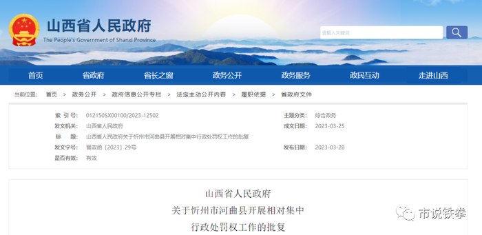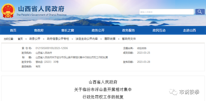 改革!山西省政府批复:两县综合行政执法局(市场监督管理局)集中行使行政处罚权