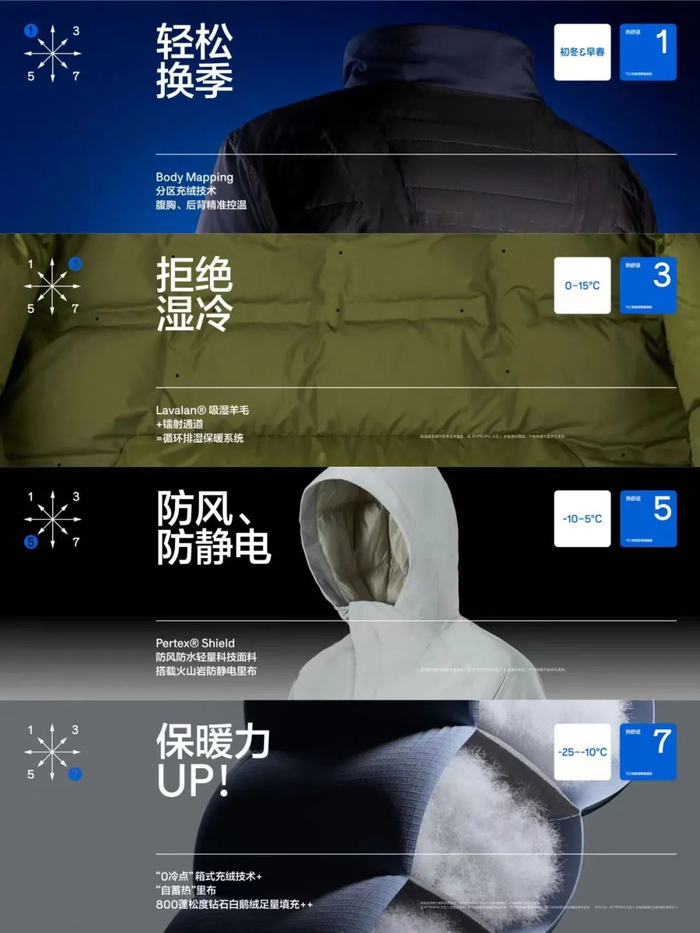 究竟什么是TCI?范主发现,不少大牌羽绒服会追求极致抗寒效果,而忽略了商务人士的穿着场景,买回家难免有些鸡肋。其实如今选羽绒服,都要从温度选起。
