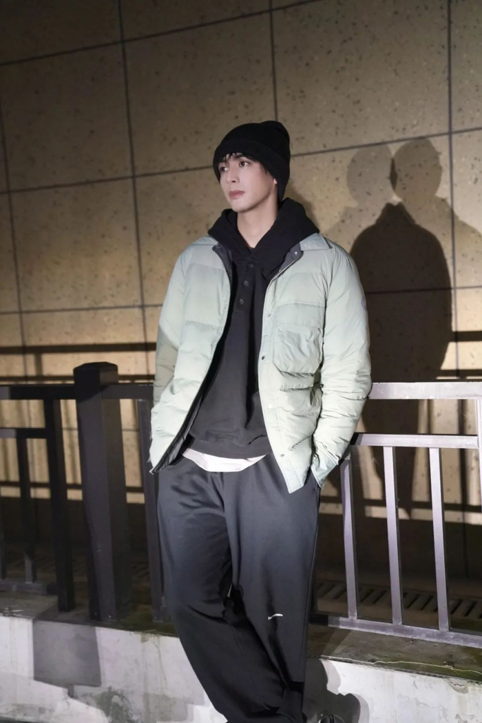许凯身上这件立领羽绒服,剪裁利落有型,薄厚适中,上身没有束缚感,他专门搭配了白Tee和小白鞋,显得干净又休闲。